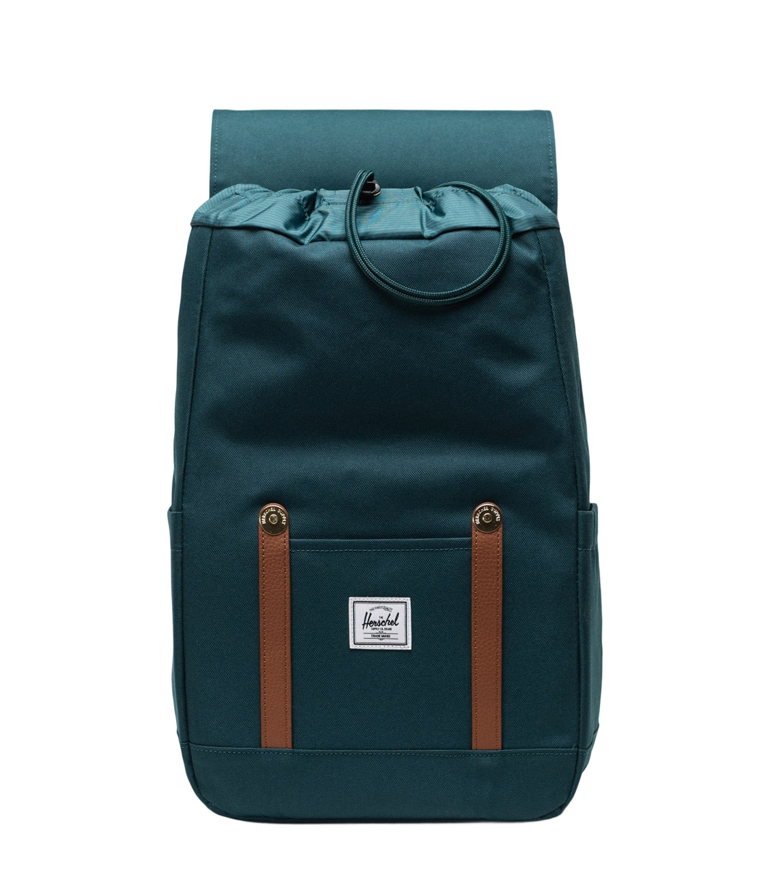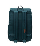 -EcoSystem 600D Fabric made from 100% recycled post-consumer water bottles -Tonal stripe EcoSystem Liner made from 100% recycled post-consumer water bottles -Padded and fleece lined floating sleeve fits a 15in/16in laptop -easy U-pull Drawcord closure -carry comfortably with Adjustable EVA-Padded shoulder straps -Compatible with a sternum strap for added support -magnet fastened straps with metal pin buckles -back entry zipper offers easy access -Dual water bottle pockets expand to Fit different sizes -Front storage sleeve -Put Yourself Out There internal label -internal Herschel Supply stripe DNA tab