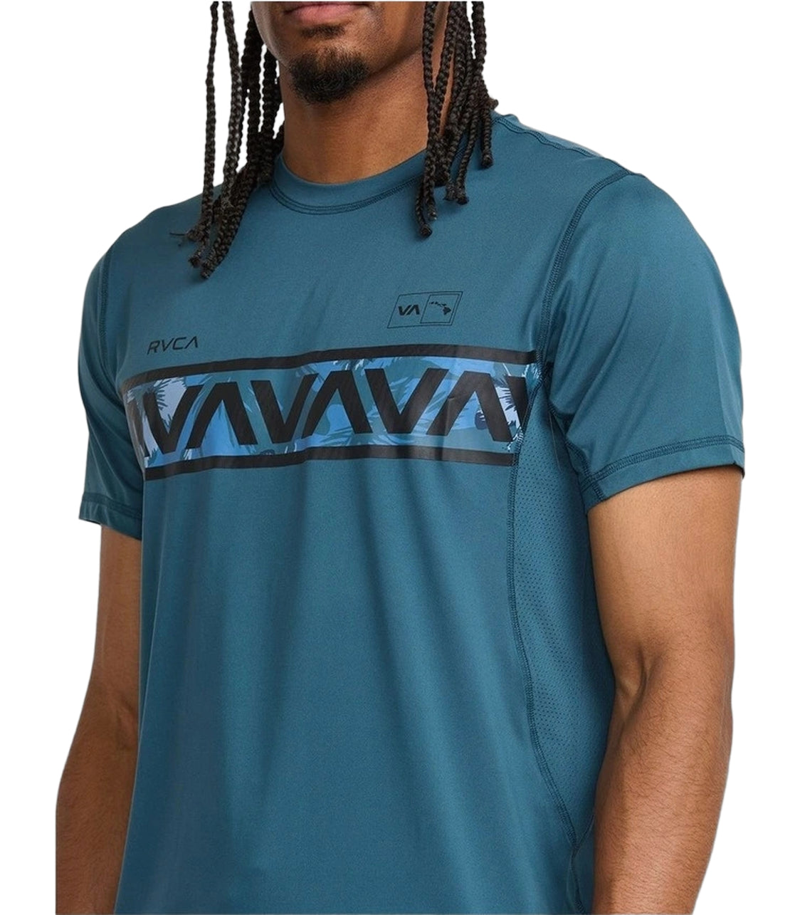 RVCA Hawaii Vent Shirt that features misture-wicking properties pull sweat away from the skin keeping you dry. Performance fit with crew neck style.