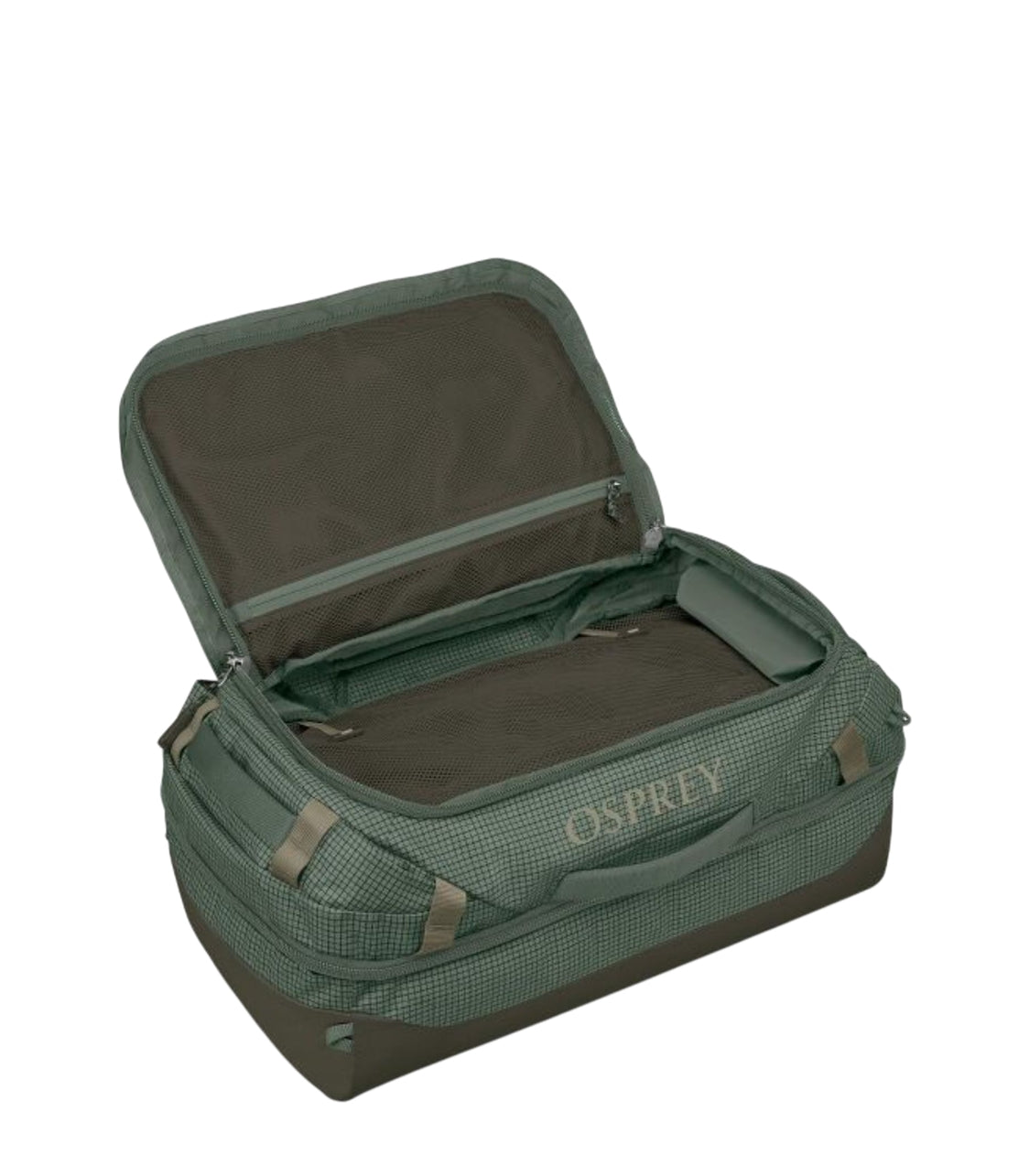 Dual entry duffel featuring both 50/50 clamshell access and traditional top-loading style with rollaway dividers