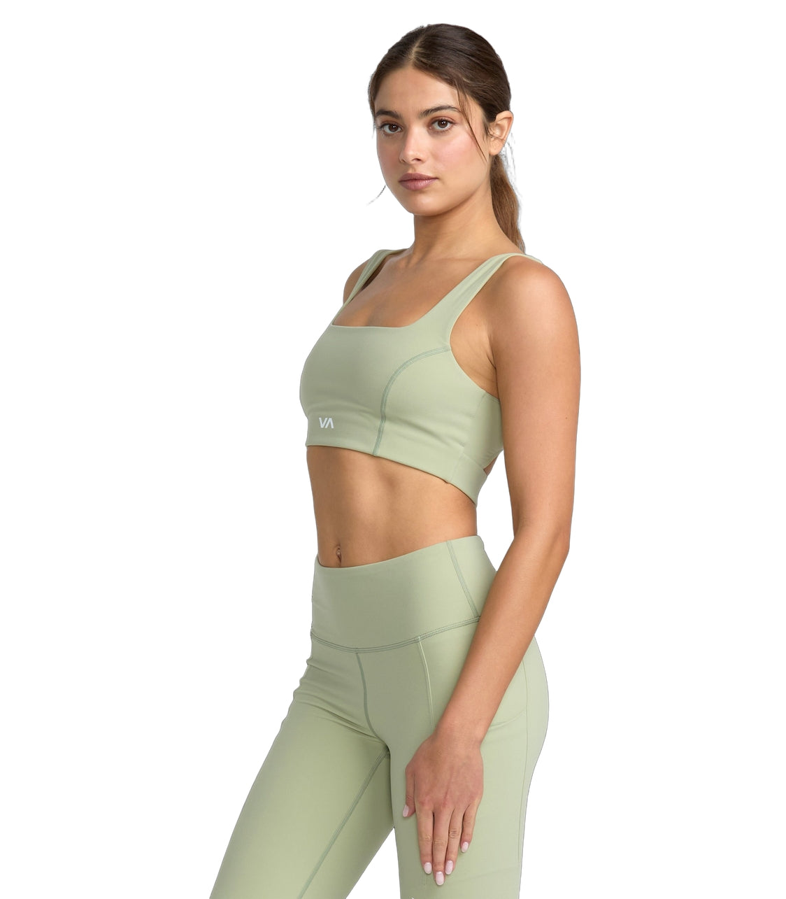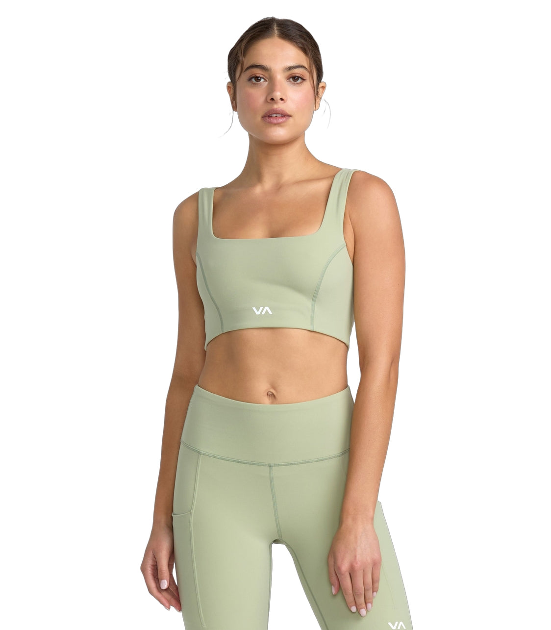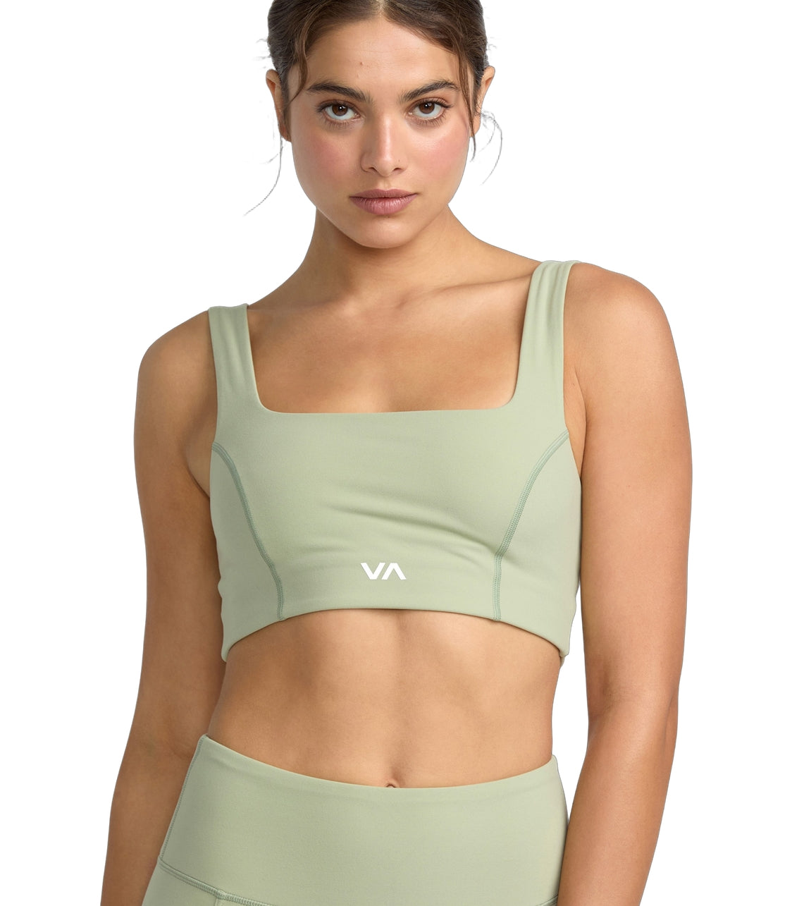 RVCA Square Neck Bra features 70% polyester and 30% elastane fabric, racer back and square neck style.
