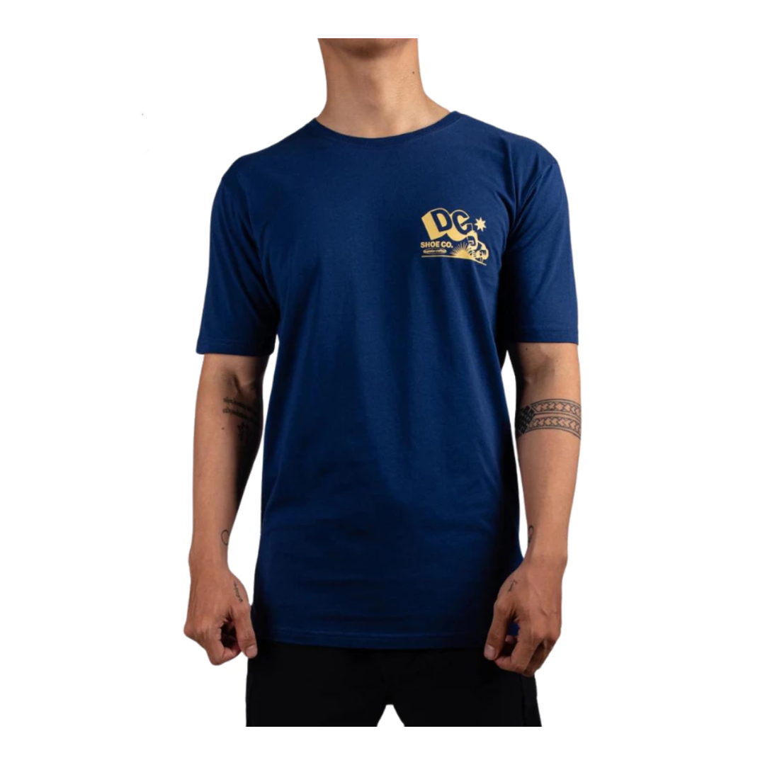DC Shoes Parts Labor SS Tee features soft plastisol ink print on left chest and back, garment washed with softener, with a regular short sleeve fit.