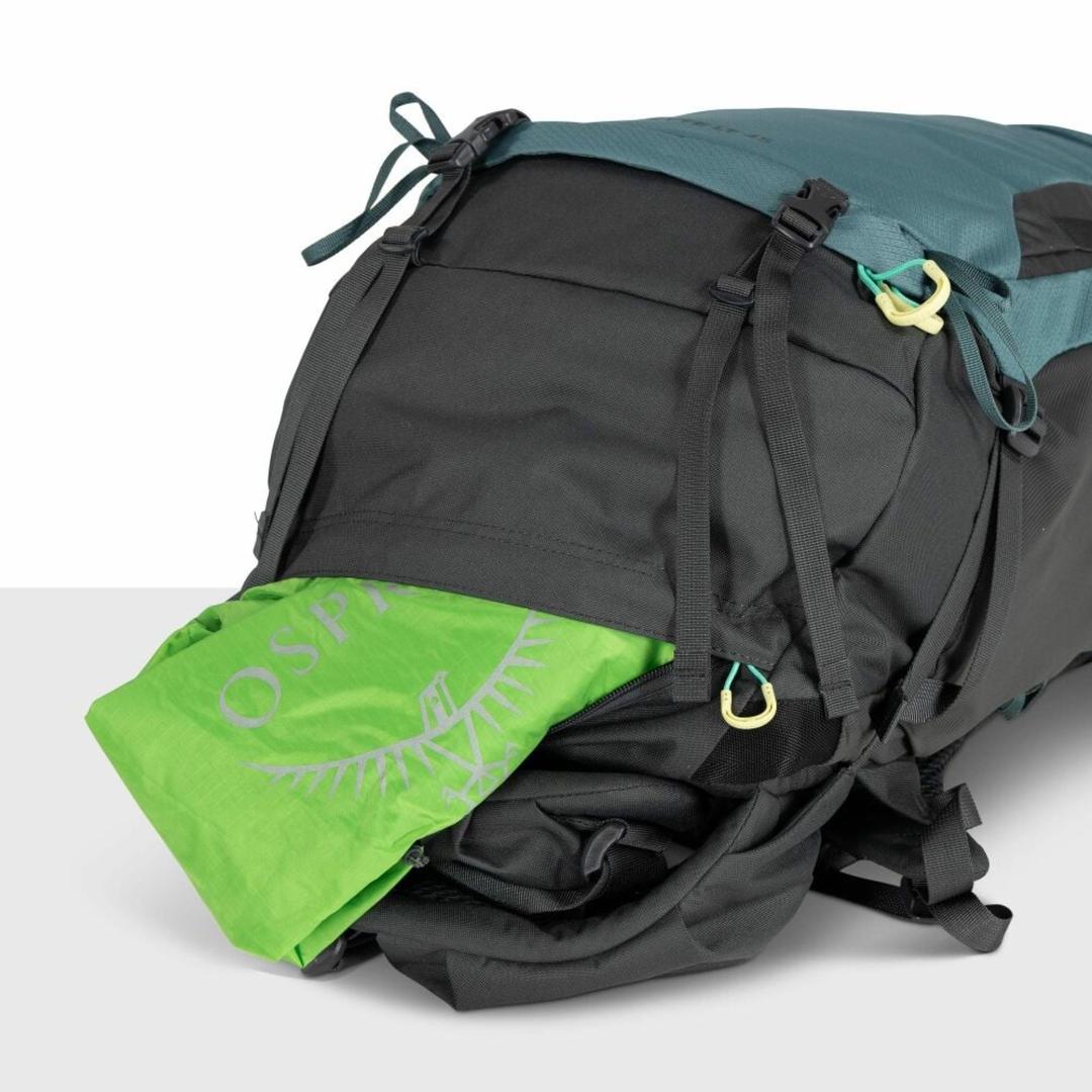 - Upper side compression straps with ice axe/trekking pole/tool capture
