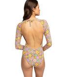 - Long Sleeve One-Piece Swimsuit for Women. Features include: Soft, resistant stretch, recycled nylon elastane blend jersey fabric.