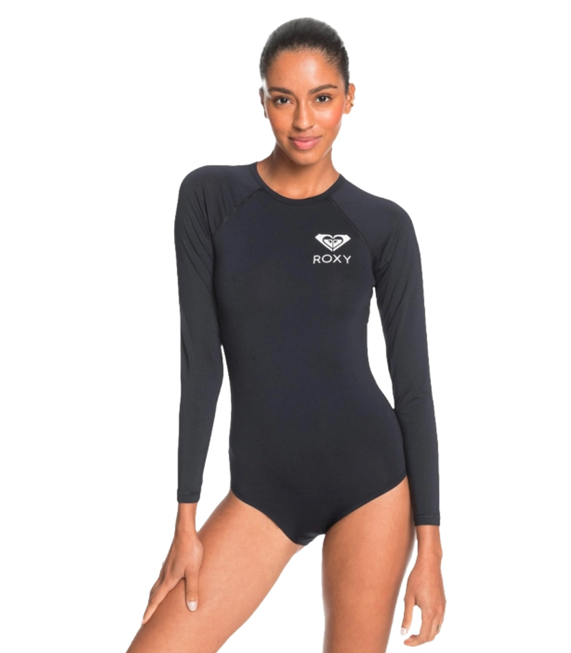 We're making sure you're staying stylish during your sun-soaked beach adventures with this long sleeve one-piece rashguard of the Core Basics Collection. Crafted with recycled REPREVE™ fabric for a fitted high-performance design and complete with an easy back-zip closure.
