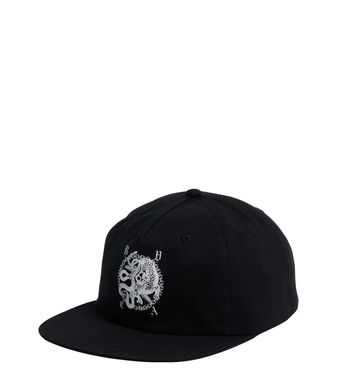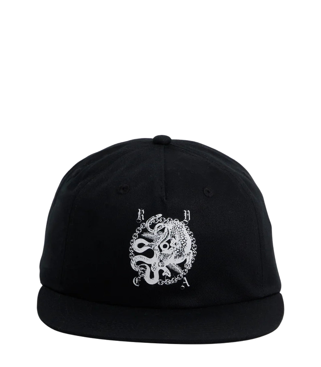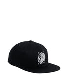 RVCA's Benj Snapback that features 100% cotton twill fabric with a 5 panel construction, and a flat brim with CF print.